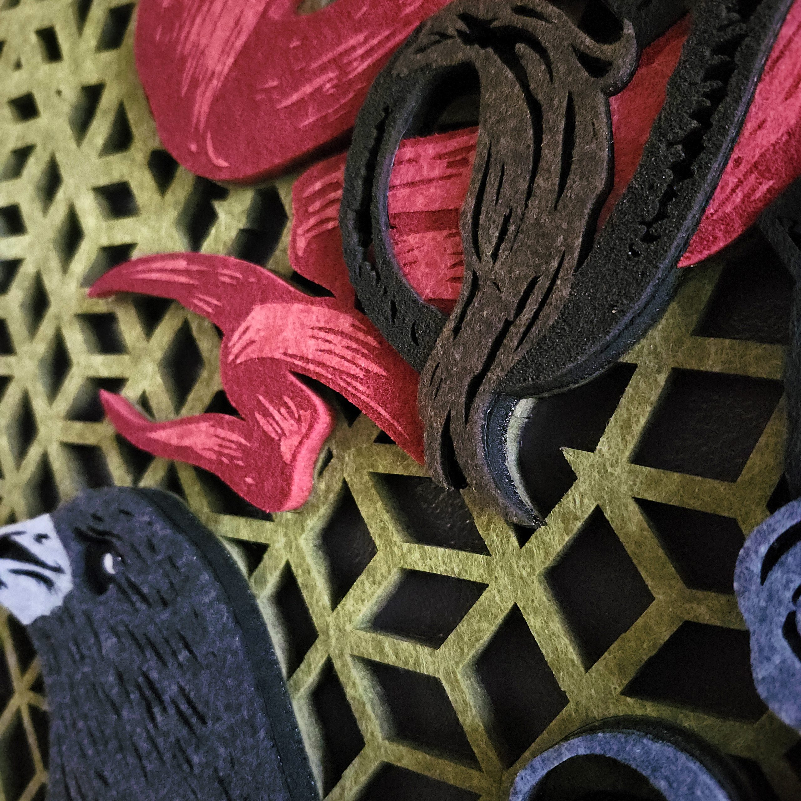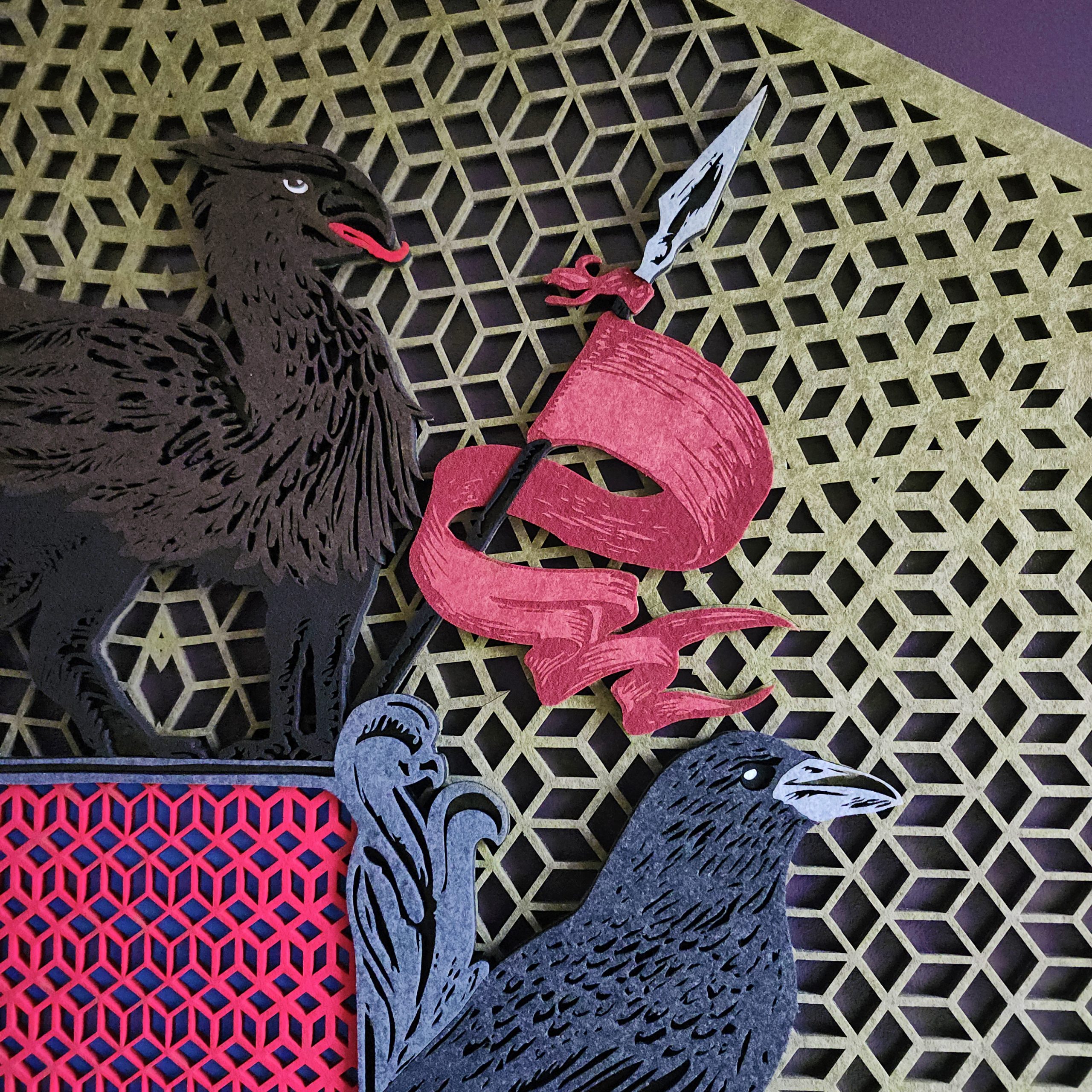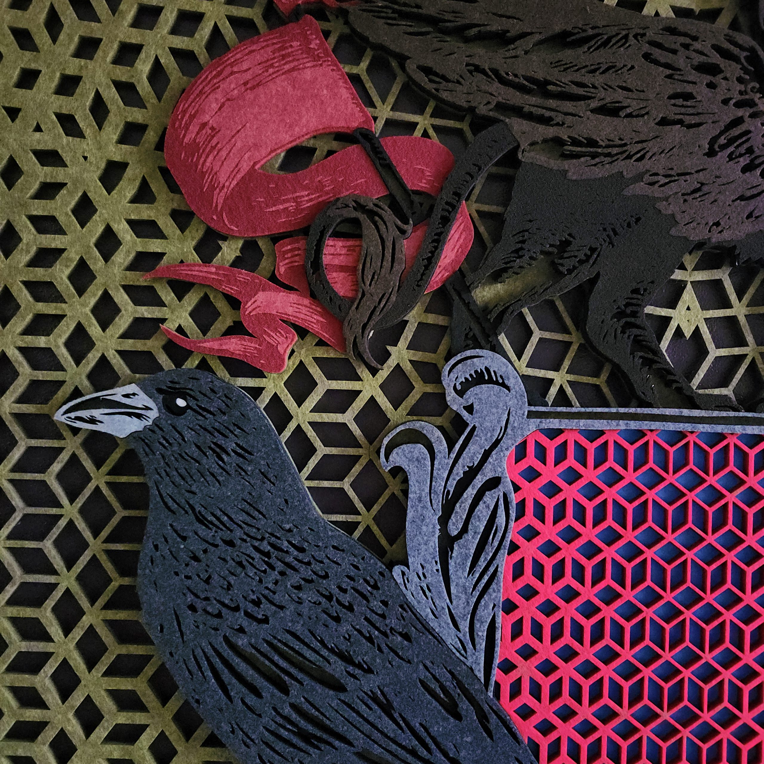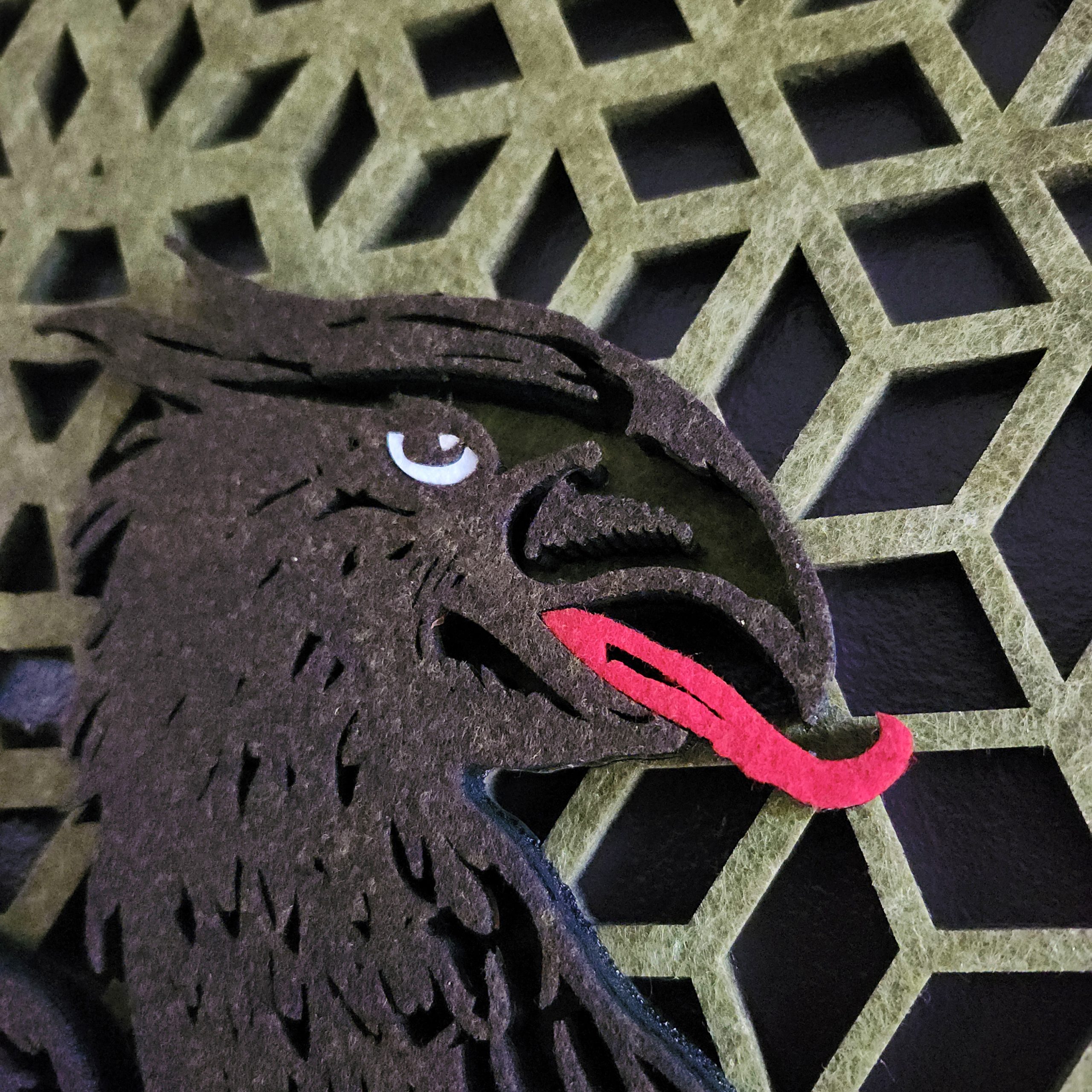 The Zero-Fray Advantage: Because our lasers use a thermal process, the edges of the polyester fabric are cauterized as they are cut. This “melts” the fibers together on a microscopic level, ensuring the intricate lattice background and the fine details of the ravens never fray or degrade.